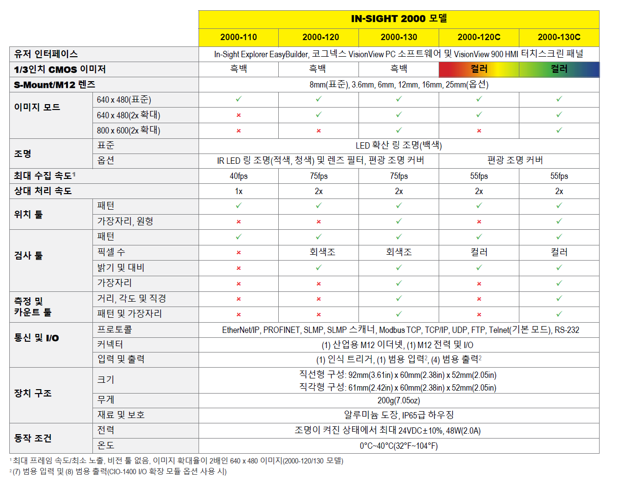 In-Sight 2000 비전 센서 특징