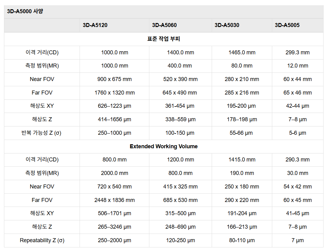 3D-A5000 시리즈 영역 스캔 3D 카메라