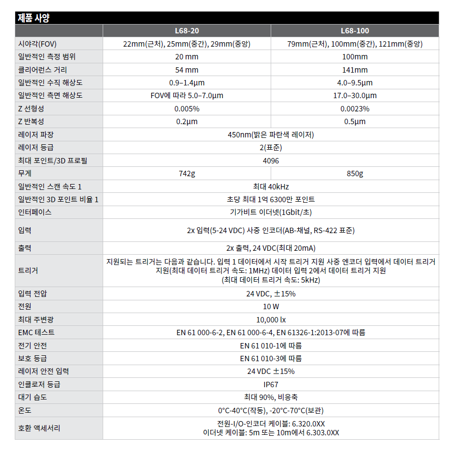 L68 시리즈 레이저 변위 센서는 상세한 3D 검사를 제공하여 제품 품질을 최적화하도록 설계되었습니다.