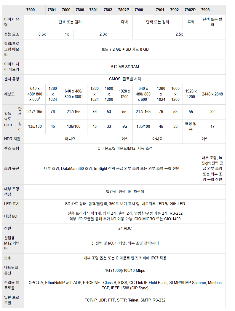 In-Sight 7000 시리즈는 단색 및 컬러 모델, VGA ~ 5MP급 해상도로 제공됩니다.